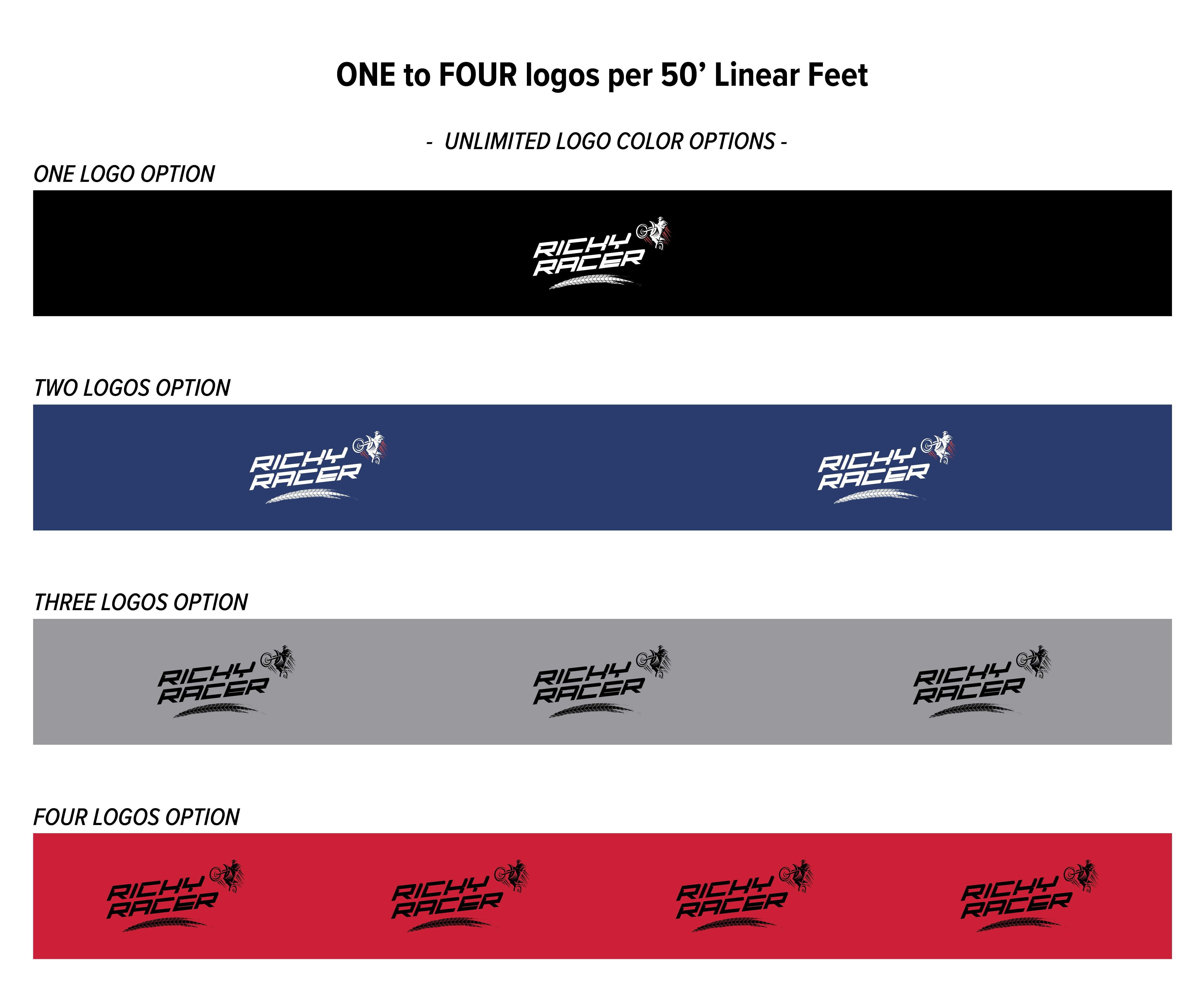 Available in 6' and 8' heights only. Length options: 50', 100', 150', or 200'. Logos are printed at a fixed size of 18 square feet per graphic. Subject to minimum order fee. No finishing or customization options available for this product.
